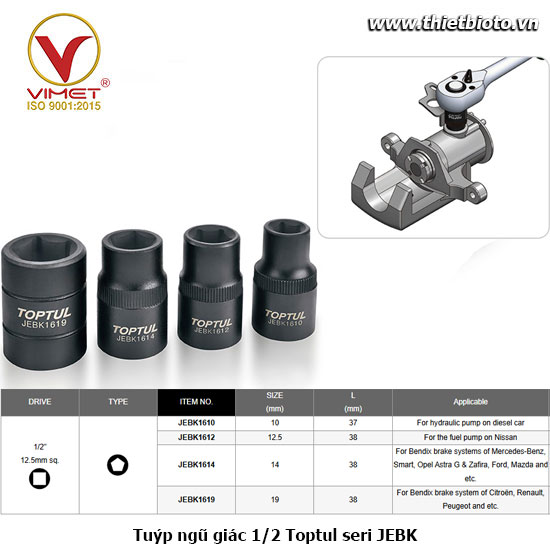 Hiện nay, Công Ty Cổ Phần Kỹ Thuật Thiết Bị Việt Mỹ đã trở thành đối tác của TOPTUL và là phân phối độc quyền dụng cụ cầm tay tại thị trường Việt Nam. Một số dòng sản phẩm của VIMET chúng tôi: